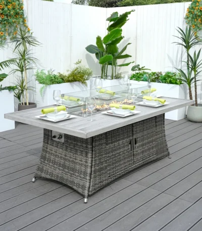 Wicker & Aluminum Patio Dining Table – Built-In Fire Pit Centerpiece