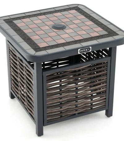 Square PE Rattan Outdoor Side Table with Umbrella Hole