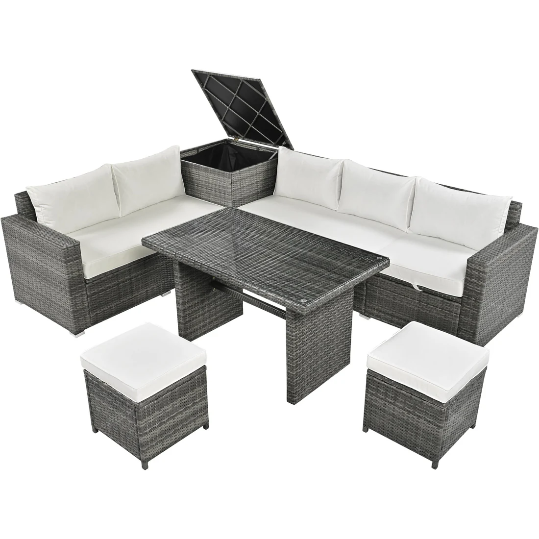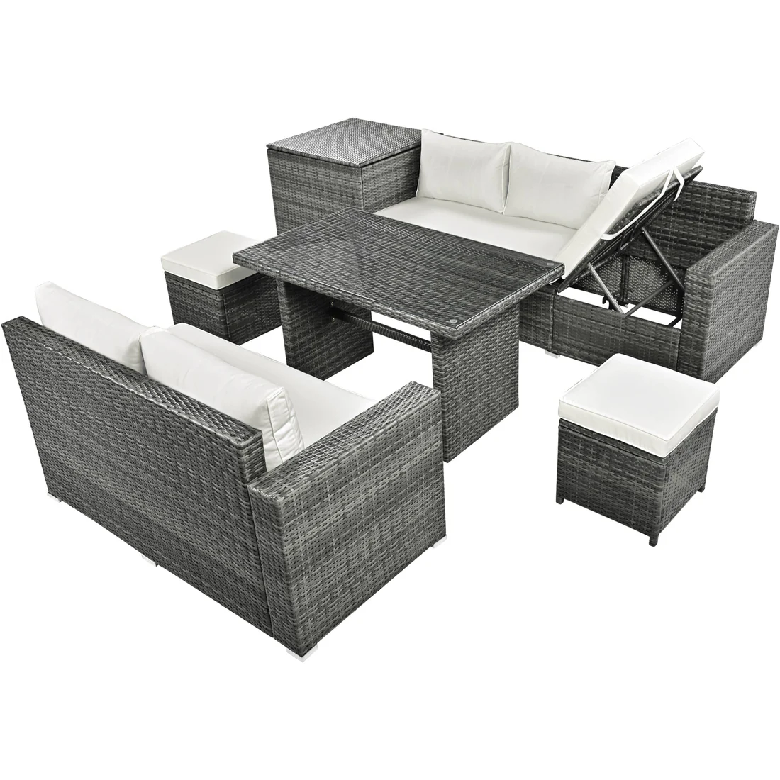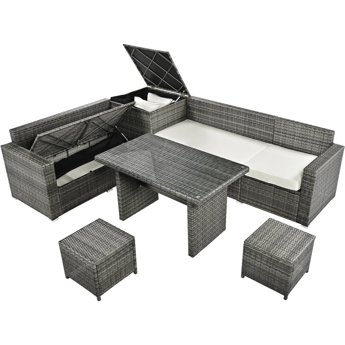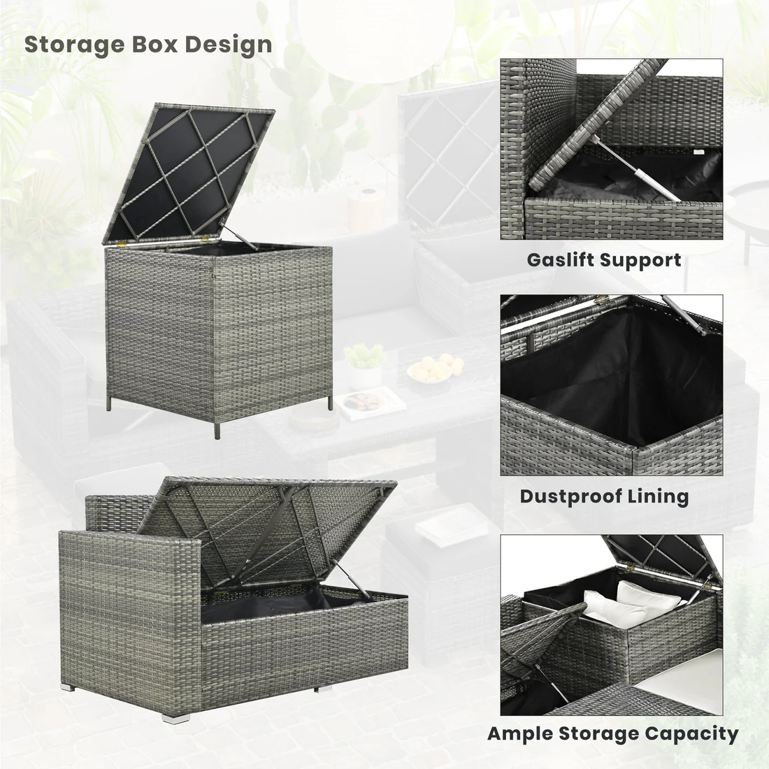 • Versatile Storage Solutions: Features innovative storage options including a loveseat with an openable seat and a robust gas lift storage box, perfect for tucking away cushions and outdoor essentials.
