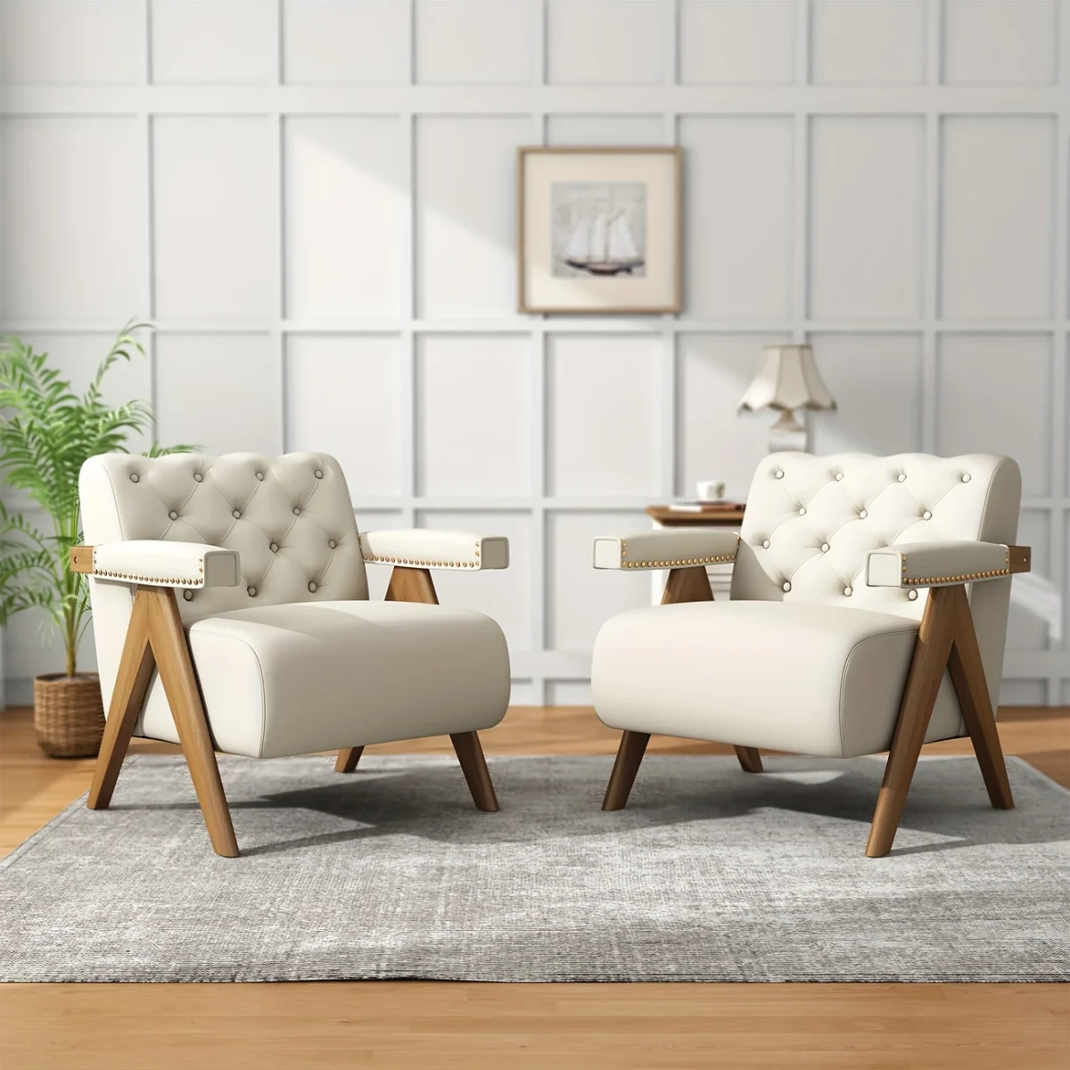 Set Of 2 Mid Century Wingback Accent Chair