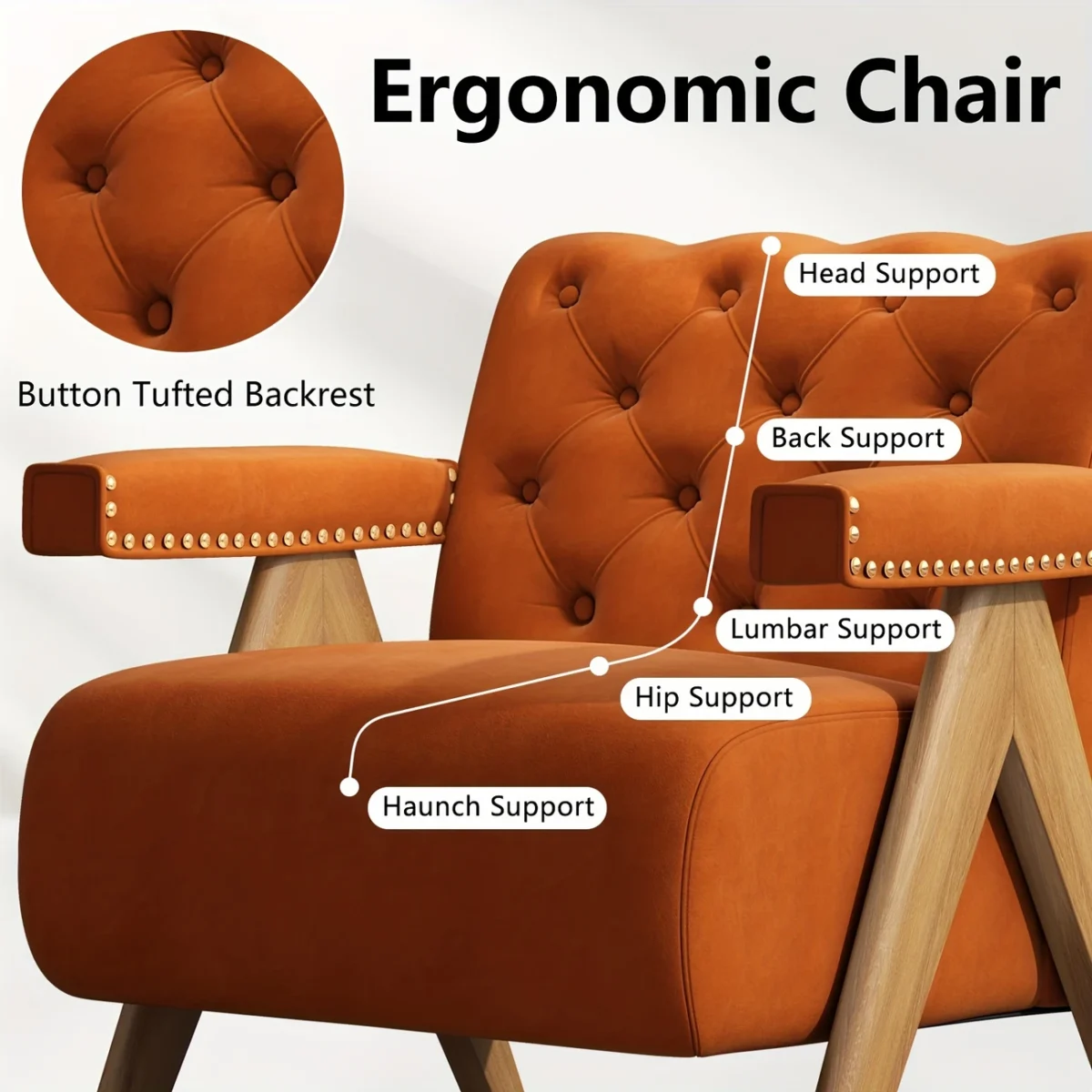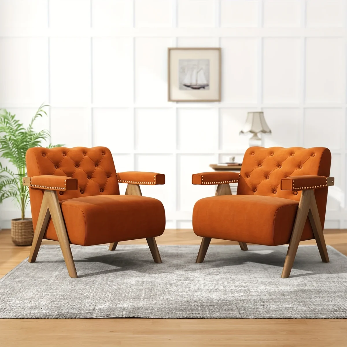 Set Of 2 Mid Century Wingback Accent Chair, Upholstered Tufted Arm Chair With Solid Wood Frame, Comfy Velvet Armchair Leisure Sofa For Living Room And Bedroom