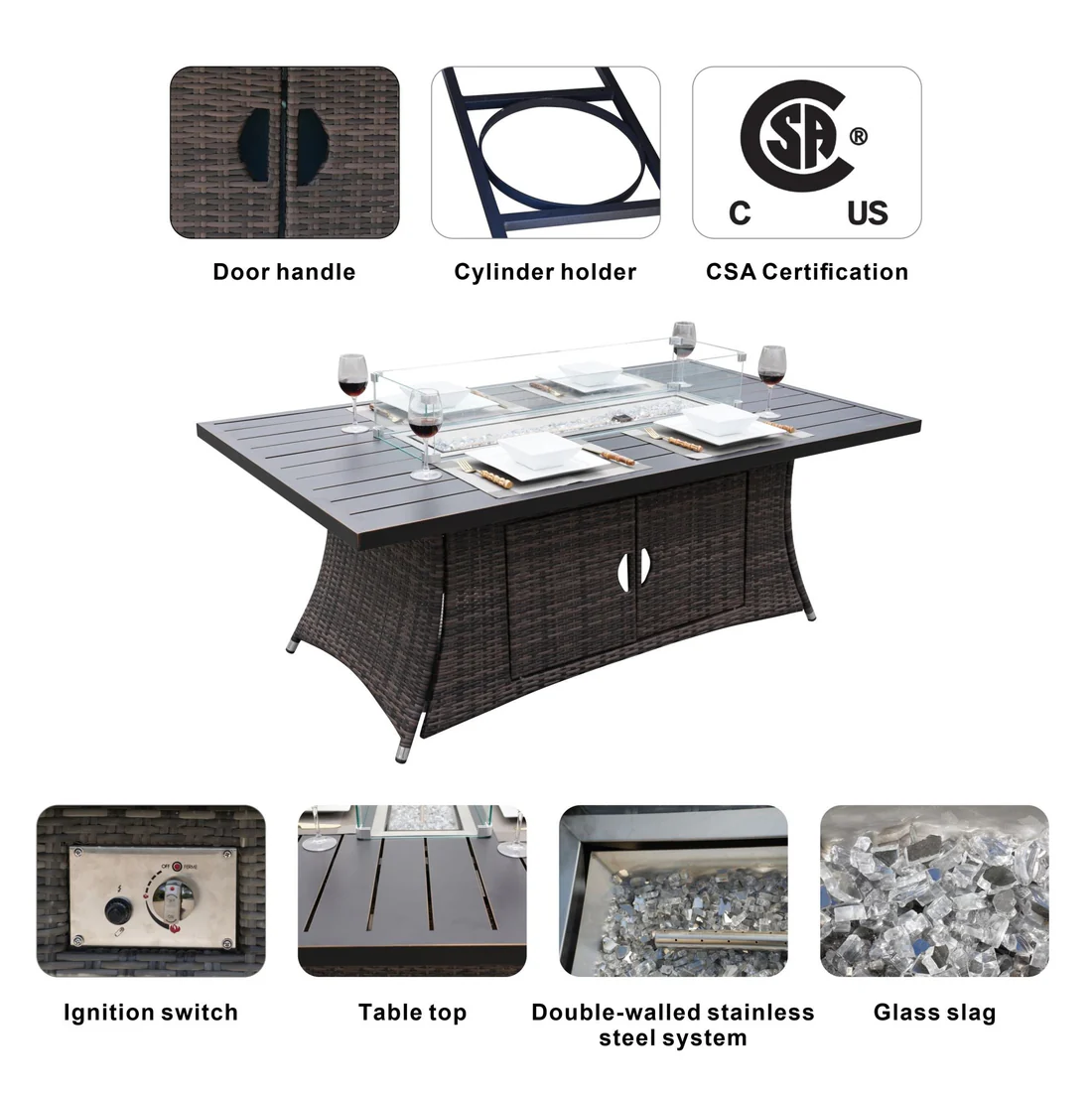 • 📐 Dimensions: Table – L71" x W39" x H27", Fire Pit Cover – L37" x W6.8" x H0.4"